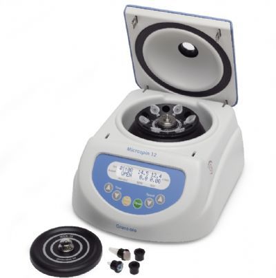 台式迷你高速离心机,固定转子可容纳12×1.5/2.0ml微量管,适用于生物医学实验室。